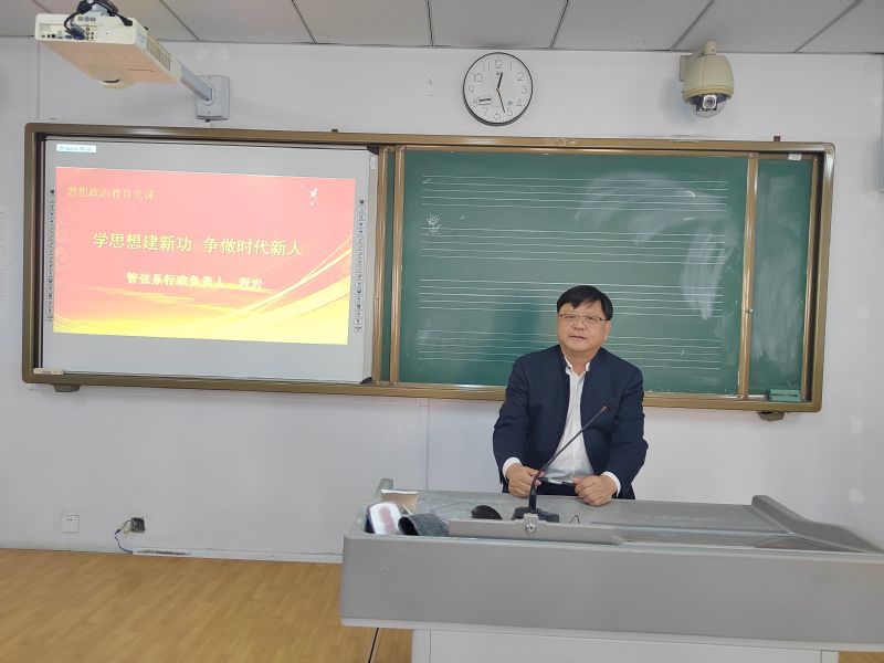 行政负责人程岩以《学思想建新功 争做时代新人》为题,从提高政治站位充分认识习近平新时代中国特色社会主义思想的重大理论和实践意义、加强党性修养自觉用习近平新时代中国特色社会主义思想凝心铸魂、牢记初心使命以实际行动践行“为民服务”的宗旨,并从三方面进行阐释和讲解,勉励广大青年学生要坚持以习近平新时代中国特色社会主义思想为指导,努力做有理想、负责任的行动主义者,踏上新征程、创造新伟业,努力以新担当新作为履行好党和人民赋予的新时代新使命。