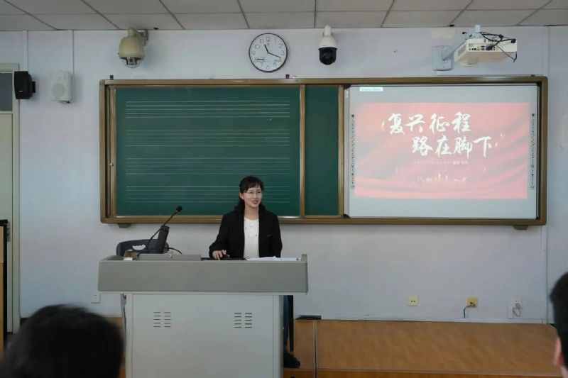 董蓉以“复兴征程,路在脚下”为题上了一堂党纪学习教育专题党课。2024年正值中华人民共和国成立75周年,董蓉从词曲作者均由沈阳音乐学院校友创作,且传唱度极高的作品《我和我的祖国》入手,为大家讲述这首作品的创作背景、词曲作者,她讲到《我和我的祖国》这首作品以抒情、悠扬的旋律表达人民对祖国的深厚情感。然后,她带领大家共同回溯了这75年来中国的繁荣发展,并讲述了党员领导干部的廉洁故事,教育同学们要时刻拧紧世界观、人生观、价值观的总开关。最后,她向同学们提出殷切期望,希望同学们要心怀祖国、志存高远,将个人理想融入祖国的发展中,不负青春,迎难而上,成为新时代的建设者。