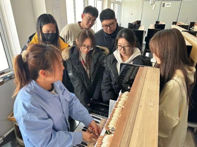 当天,在企业领导的带领下全体师生对实习环境进行了参观,然后经过校企双方协商对接,进行实习工作分组,共分为头番、二番、键盘整理、调律四组。随后,同学们依据被分配的组别进行详细深入学习与实操,熟练操作所学知识后分组进行轮换,以确保让每名学生对每道工序充分实践。在实践过程中,同学们的专业能力、认真的实习态度,以及持之以恒的工匠精神得到了企业领导和老师的高度认可。