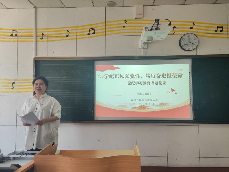 为了深入推进党纪学习教育,加强党员党性教育和纪律意识,6月17日,在长青校区第二教学楼308室,音乐科技系直属党支部成功举办了党纪学习教育党课。本次党课由直属党支部书记姚艳秋主持,音乐科技系班子成员、学生党员以及入党积极分子共同参与了此次学习。