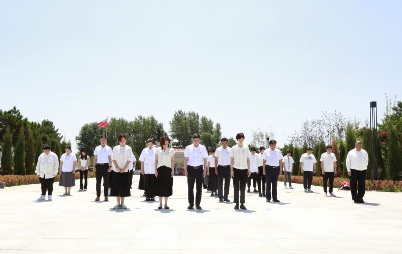 默哀仪式结束后,学校领导班子成员缓步走向纪念碑并敬献花篮。全体党员缓步绕行,瞻仰纪念碑,一起向革命英烈表达最崇高的敬意和最深情的思念。胡术艺带领全体党员面向党旗和烈士纪念碑,重温入党誓词。“我志愿加入中国共产党,拥护党的纲领,遵守党的章程……”这神圣而熟悉的誓词,在烈士陵园久久回荡,每一个字都掷地有声,仿佛回到入党时那热血沸腾的时刻,更深感肩上的责任重大。