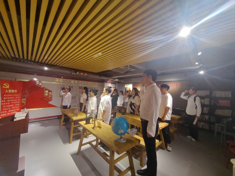 活动最后,全体党员紧握右拳,在党旗下庄严宣誓,重温入党誓词。铿锵有力的誓言再次激发了大家对党的忠诚和对共产主义事业的坚定信念。教师党员石曾献唱了一首《党旗更鲜艳》,用歌声表达了对党的热爱和敬仰之情,将活动的氛围推向了高潮。