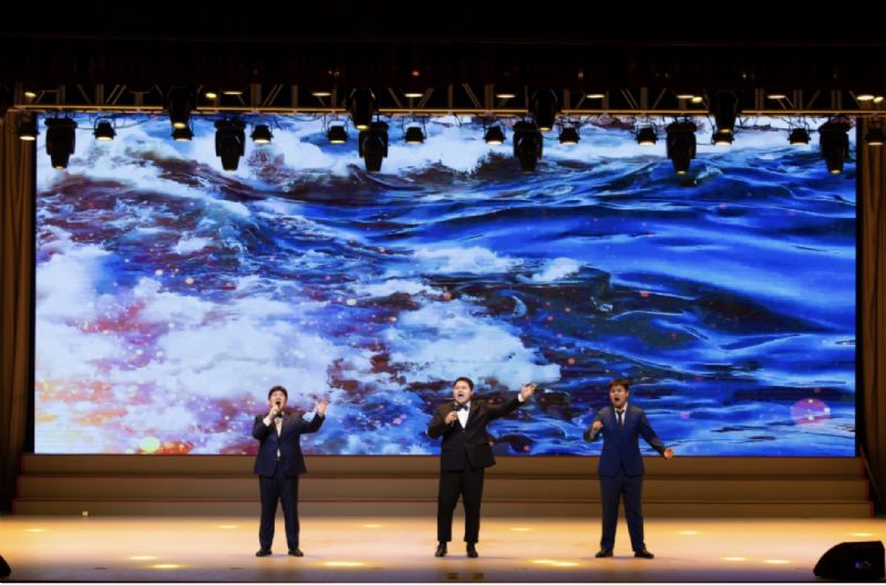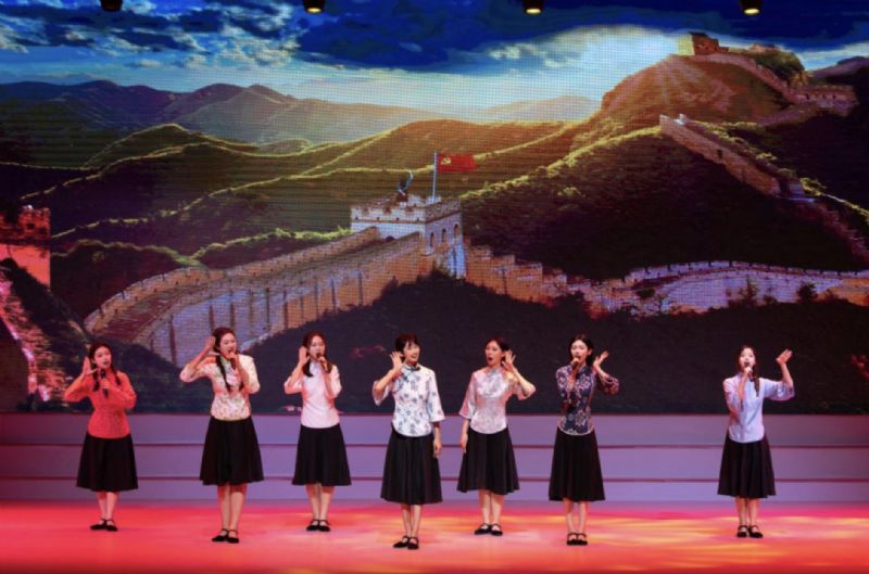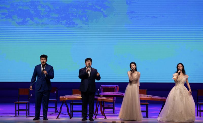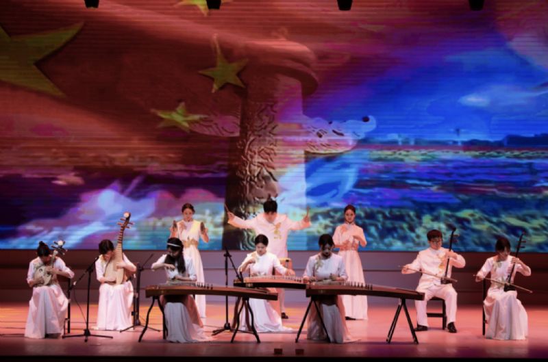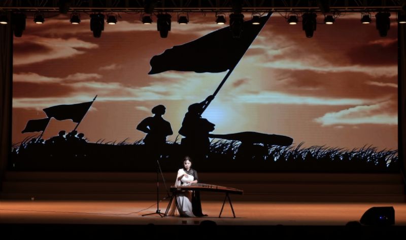 第三篇章:祖国不会忘记。古筝重奏《我的祖国》、男女声二重唱《不忘初心》、二胡群奏《赛马》展现出中国人民志愿军热爱祖国和家乡的深情和革命英雄主义的气概,抒发了对党的无限忠诚与满腔热爱。