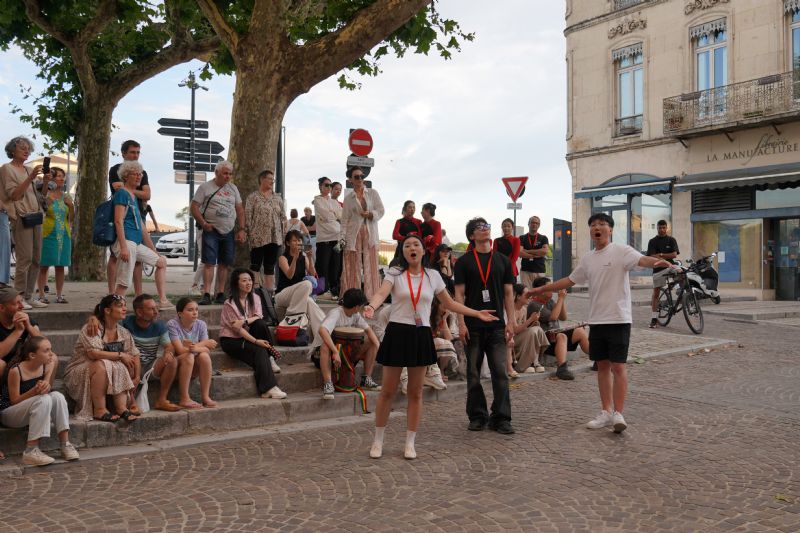 经过12小时飞行和7小时车程,当地时间7月3日,代表团一行抵达本次巡演第一站——伊泽尔河畔罗芒市。在为期7天的罗芒艺术节上,我院代表团先后在圣巴纳德学院广场、市政厅花园、热朗街心公园等地参加7场联合演出、2场巡游演出、1场专场演出和1场文化交流活动,集中展示了中国文化的独特魅力,受到广大市民的热烈欢迎。在罗芒市莫桑公园,代表团还与来自法国、美国、马其顿、巴西、印度、墨西哥、乌干达等国家的12支艺术团共同参加开幕式演出。