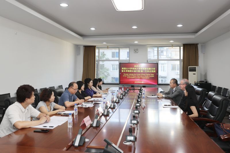 王硕对查尔斯·杨一行的到访表示热烈欢迎,她简要介绍了学院的历史沿革、专业设置和近年来在国际化办学等方面取得的成果。王硕表示,学院始终坚持高水平、有特色、国际化的办学目标,一直以来高度重视国际交流与合作。期待两校以此次会议为契机,创新合作模式,在学生交换、教师进修、互访交流和联合培养等领域开展更深入交流、达成更广泛合作,共同推动中美两国音乐教育事业繁荣发展。