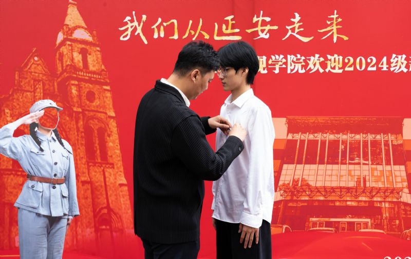 迎新当天,学院领导现场指导迎新工作,询问学生报到情况,慰问志愿者和现场工作人员。展板前,学院领导为刚刚入学的新同学佩戴“沈阳音乐学院”校徽,给予新同学归属感与大学生身份认同感。学院领导还深入宿舍走访慰问2024级新生,仔细察看学生居住环境,询问学生生活适应情况,详细介绍校史校情,与学生家长亲切交流,并勉励同学们尽早树立学习目标,规划大学生活,养成良好学习和生活习惯,拼搏进取、奋发有为,做新时代有理想、有本领、有担当的优秀青年。