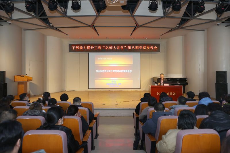 12月13日,干部能力提升工程“名师大讲堂”第八期专家报告会在三好校区第二教学楼424多功能厅举行。中共辽宁省委党校(辽宁行政学院、辽宁省社会主义学院)党建教研部主任牟广东教授应邀作题为“习近平总书记关于党的建设的重要思想”的专题辅导报告。学院党委书记赵恒心,各职能、教辅部门和教学单位处、科级领导干部,党支部书记、专职组织员、专职党务工作人员和辅导员近300人参加报告会。报告会由党委委员、组织部部长张庆玫主持。