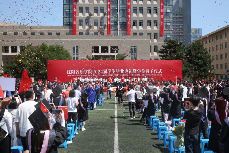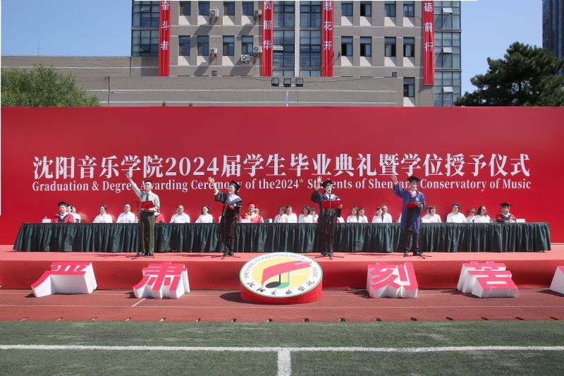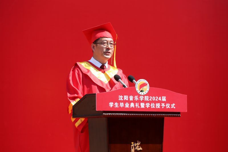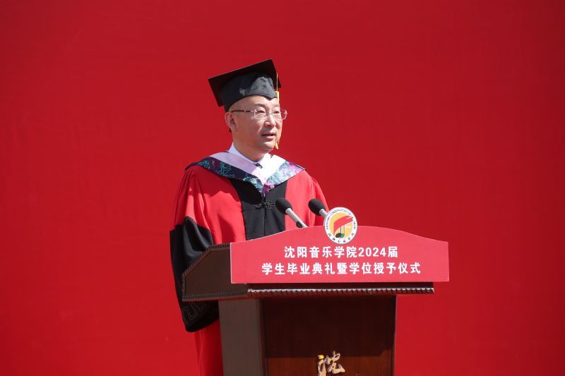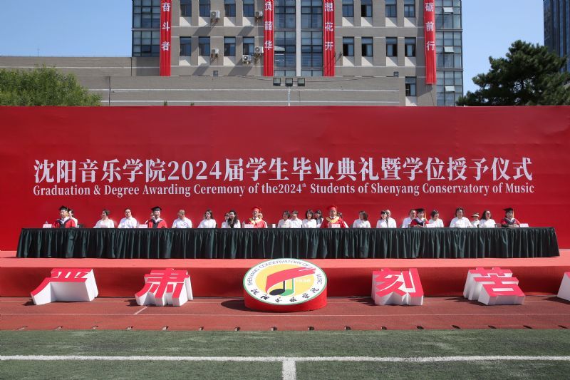 青春启程、奔赴山海。向祖国报到,向人民报到。6月26日,沈阳音乐学院2024届学生毕业典礼暨学位授予仪式在三好校区足球场隆重举行。学院党委书记赵恒心,党委副书记、院长田彦,党委副书记孙旭东,纪委书记、监察专员闫玉娇,副院长庞渤,副院长王硕,相关职能、教辅部门负责人,各二级院(系)领导班子成员,毕业生辅导员,毕业生家长代表及2024届本科生、研究生参加典礼。典礼由孙旭东主持。