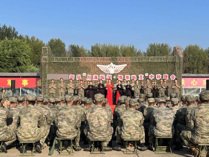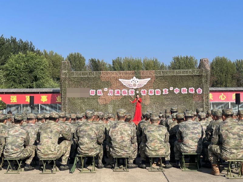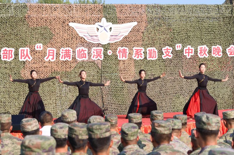 在“月满临溟 情系勤支”中秋晚会上,来自民族声乐系的研究生邵佳宁同学以一曲《幸福中国一起走》,唱出了对祖国的热爱与对美好生活的向往。她的歌声清脆嘹亮,情感真挚饱满,仿佛在诉说着祖国的繁荣昌盛和人民的幸福安康。每一个音符都如同温暖的阳光,洒落在官兵们的心田,让他们感受到了浓浓的家国情怀。舞蹈学院王乐、安思琪、曲娜 、田昱婵四名同学带来了豪放又不失柔情的舞蹈《蓝色的风》。她们身着整齐的服装,在舞台上翩翩起舞,优美的舞姿、灵动的步伐,展现出了草原上的姑娘,犹如天空一样美丽,诠释着对幸福生活的热爱和对未来的憧憬。