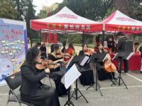 报到现场,弦乐四重奏的四位演奏同学身着优雅礼服,用悠扬婉转的旋律吸引了新生和家长们的注意。新生们纷纷驻足聆听,并表示将来一定要努力学习专业,将来成为像学姐们一样的优秀演奏者。