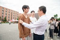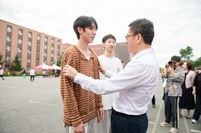 11日上午,沈阳音乐学院领导班子及相关职能部门领导亲临桃仙校区迎新工作现场,与新生及家长亲切交流,看望慰问迎新工作人员和志愿者。党委书记赵恒心为舞蹈学院2024级新生佩戴校徽。