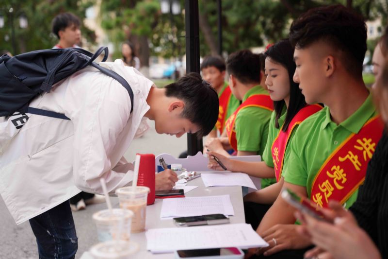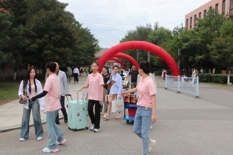 共产党员先锋岗和志愿者队伍在早7时就已到达各自点位,在新生到来的第一时间引导他们入校,帮忙搬运行李,细致耐心答疑。接过沉甸甸的行囊,欢迎远道而来的学子回“家”。