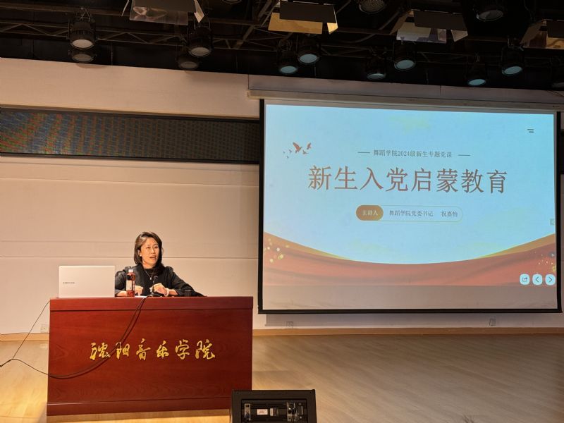 为全面学习贯彻党的二十届三中全会精神,持续深化党纪学习教育,引导青年学子坚定不移听党话、跟党走,9月13日,舞蹈学院党委书记祝嘉怡以《入党启蒙筑初心,青春向党正当时》为题,为2024级新生讲授入党启蒙教育第一课,长青校区专职辅导员及175名新生参加活动。