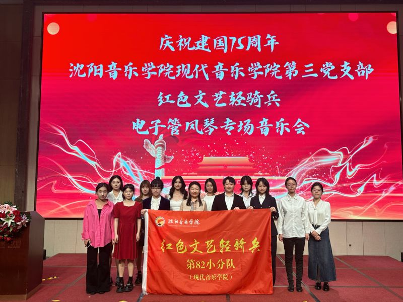 为庆祝中华人民共和国成立75周年,9月27日下午,沈阳音乐学院“红色文艺轻骑兵”第82小分队(现代音乐学院第三党支部)走进浑南区泰康之家·沈园养老服务有限公司,为老人们献上了一场精彩的文艺演出。活动由现代音乐学院副院长、第三党支部书记唐晓博组织带队,第三党支部学生党员、积极分子代表参与演出。