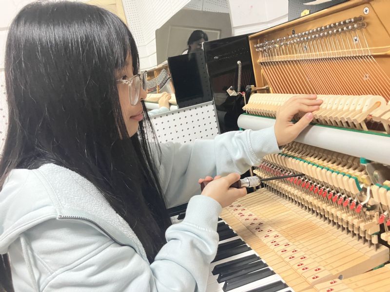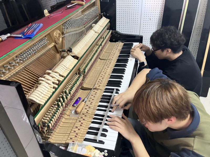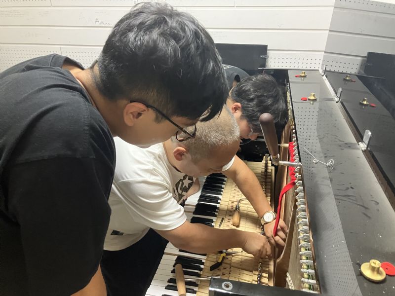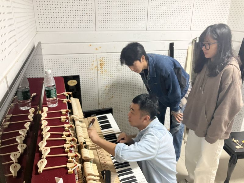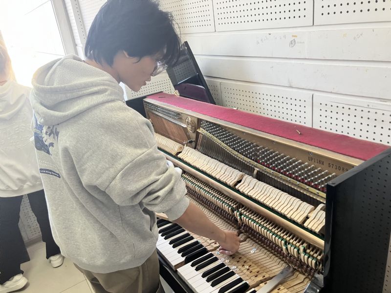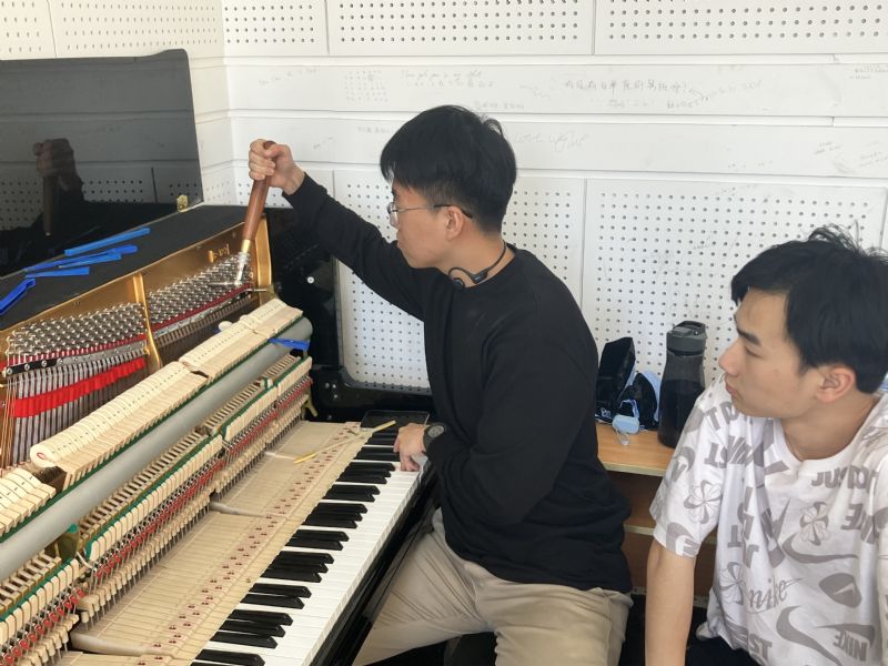 整个实践过程师生们始终保持高度热情和专注度。他们不畏辛苦,以严谨的态度和精湛的技能圆满完成了任务。经过他们的努力,50间琴房的钢琴焕然一新,音质更加纯净悦耳,为学院的教学提供了有力保障。