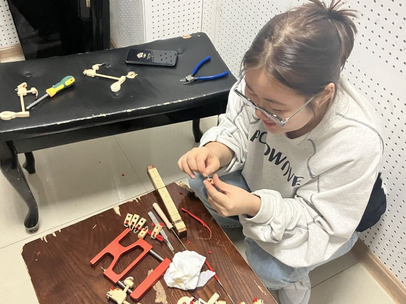 活动开始前,键盘乐器修造教研室主任魏新宇组织召开了讲解说明会,明确了实践目标、任务与分工。各位专业教师率先对每台钢琴进行全面细致的检查,准确评估其调律与维修需求。在他们的指导下,学生们分组行动,各司其职。调律组的同学们运用所学知识,专注聆听每一个琴音,精心调整音准,力求使每台钢琴都达到最佳演奏状态。维修组的同学们则面对键盘不平整、琴弦更换、琴键故障等复杂问题,熟练运用专业工具进行细致修复,展现出精湛的技能和严谨的态度。