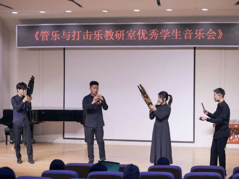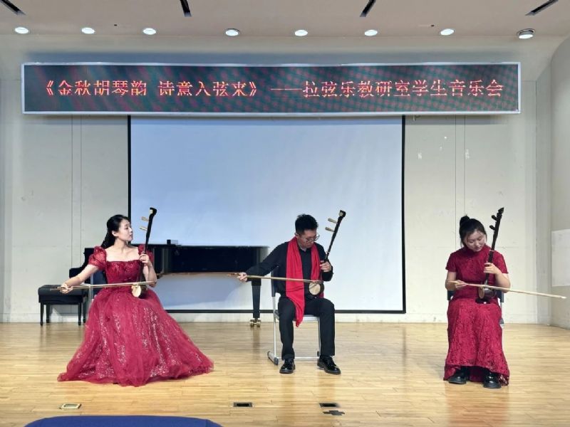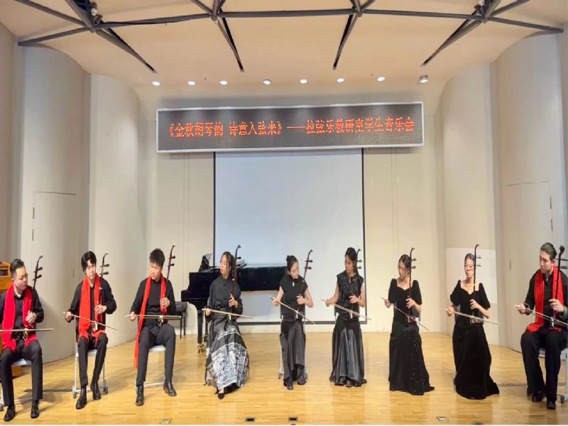 金秋胡琴韵、诗意入弦来。9月23日、24日、27日,弦乐教研室、弹拨教研室、管乐与打击乐教研室相继举办优秀学生音乐会。二胡、板胡、大提琴、低音提琴四种弓弦乐器,用独奏、重奏等形式演奏的多部弦乐经典作品,如丝绸般轻舞飞扬,仿佛诉说着人民对美好幸福生活的热爱与追求;独奏、协奏、重奏等多种形式呈现的十首弹拨乐曲,沁润着内心时而宁静,时而澎湃,好似华夏千年文明之画卷在眼前徐徐展开;管乐与打击乐演绎的传统经典又不乏现代创意的曲目,以及极具民族特色的作品,令观摩的师生更加深刻感受到器乐文化的独特魅力,惊叹于个人演奏及重奏小组协作配合的高超能力,进一步激发了民乐学子勤学苦练提升专业的学习热情,也感动于民乐教师倾囊相授和望子成才的为师初心。