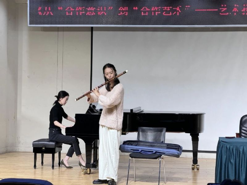 民乐新文化,融合再创新。9月26日,《从“合作意识”到“合作艺术”——艺术指导教研室讲座》成功举行。侯嘉老师以二胡《狂想曲》、《桃花坞》及竹笛《楚颂》为例,通过讲演的方式与学生配合,细致讲解了合乐过程中应注意的问题;林晓琳老师在《与扬琴进行合乐中应当注意的问题》中重点强调的节奏问题;三位研究生同学现场分享了合乐经验以及合乐带给自己的心灵感悟;讲座最后,汪茜老师解答了同学们在实际操作中遇到的各种问题。所以,民乐之精彩,便是在多种元素多种形式的交流与碰撞中焕发出新的活力与魅力;民族之器乐,便是在深入挖掘民族音乐的深层内涵中创新出新的多姿与多彩。