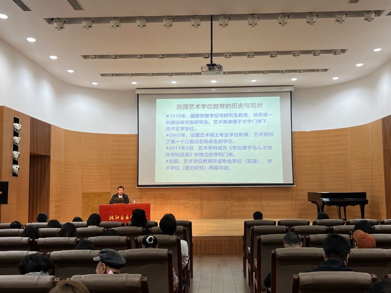 讲座中,宋慧文介绍了研究生教育的历史发展沿革、学术学位与专业学位的各自特点、艺术专业学位研究生培养的基本特征、存在的主要问题以及艺术专业学位研究生培养的重要意义等,特别是针对学科目录调整和《中华人民共和国学位法》颁布后,如何更好地加强研究生分类培养,提升研究生教育质量和教育工作水平提出了前瞻性、建设性的建议。他强调,新时代赋予新机遇,艺术专业学位研究生教育要坚定不移地走中国特色发展道路,落实立德树人根本任务,坚持精准培养、提升质量、服务需求的价值导向,为以中国式现代化全面推进强国建设、民族复兴伟业提供人才支撑。