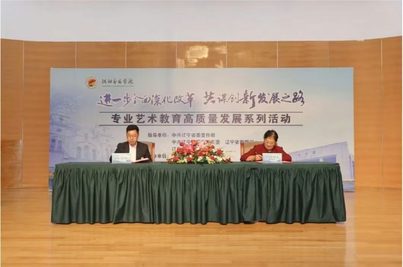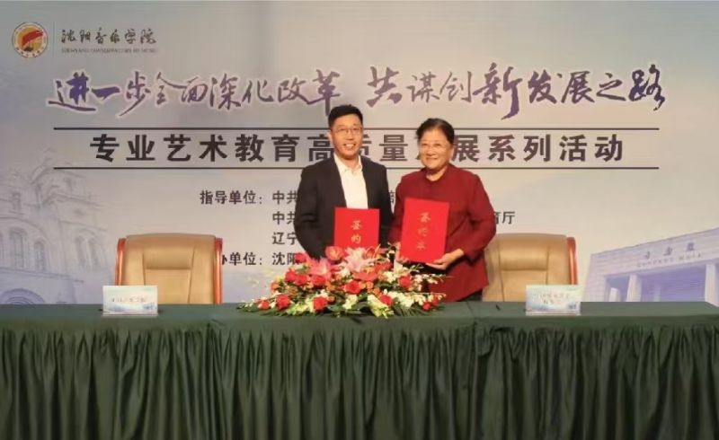 沈阳音乐学院副院长庞渤与中国延安鲁艺校友会理事、常务理事、会长马海莹签署战略合作协议