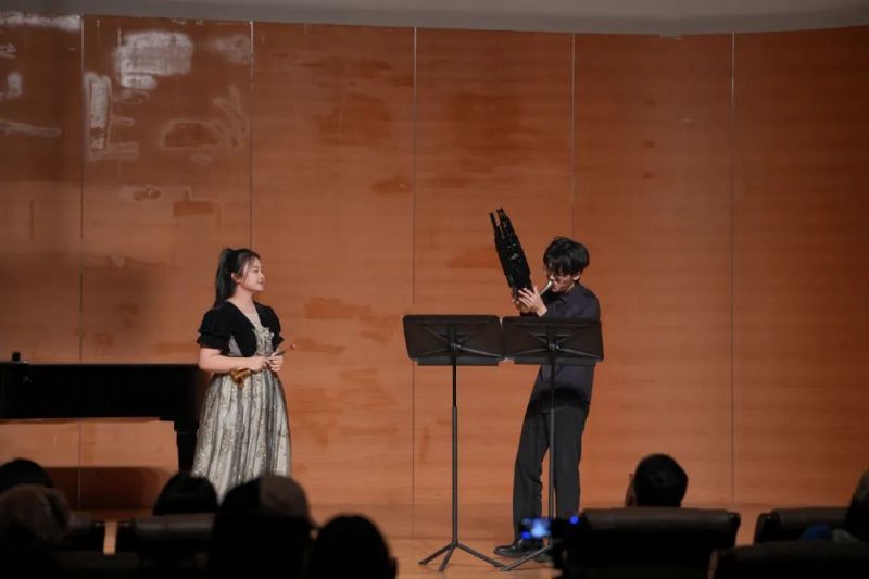 本次音乐会以文佳良老师创作的作品《冬猎》开场,演奏者运用笙的丰富技巧,生动描绘了鄂伦春族人民在茫茫林海雪原中放马追逐猎物的场景。
