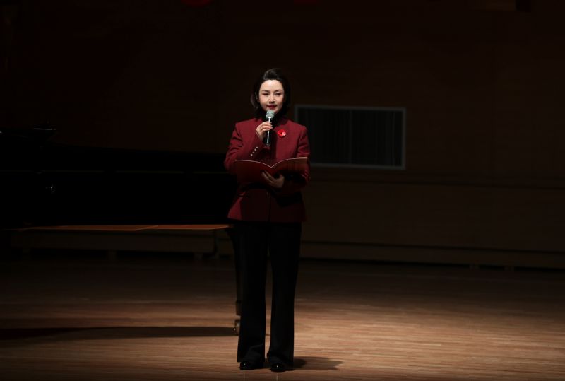 匡祎老师压轴出场演唱了歌剧《沂蒙山》中最具戏剧张力和爆发力的唱段——《苍天把眼睁一睁》。从一声痛彻心扉的台词“小山子”开始,她全身心的表演深深震撼和感染了每一位观众。钢琴艺术指导:高锐。
