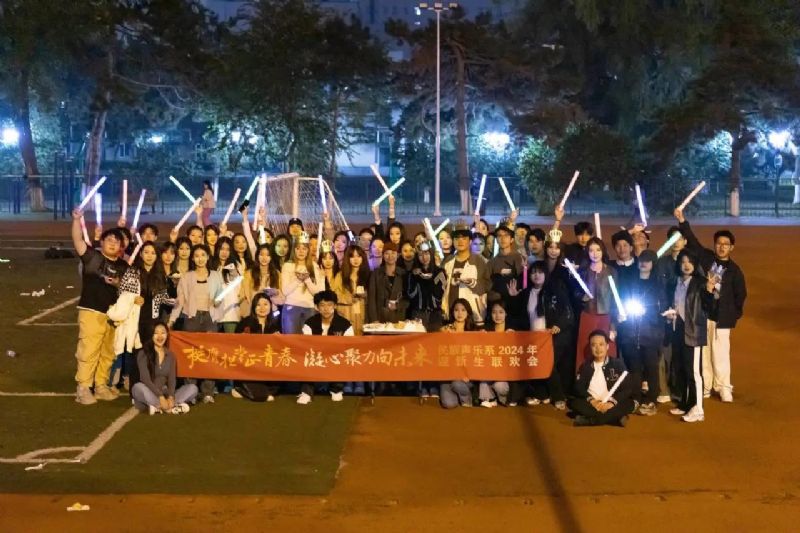 喜迎国庆华诞,民歌精彩飞扬。9月27日,校园内洋溢着青春的活力与喜悦,一场精彩纷呈的“挺膺担当正青春 凝心聚力向未来”民族声乐系2024年迎新联欢会在三好校区足球场上隆重举行。民族声乐系党总支书记郎丽红、组织员吴迪以及辅导员王国峰、易美含,与2024级新生齐聚一堂,共同见证新同学们怀揣憧憬与梦想,开启大学之旅的精彩篇章。