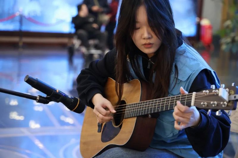 活动中小分队成先后为市民们献上了精心准备的文艺节目。其中我系组织员石曾老师以一首《幸福中国一起走》开启了活动的序幕,活动中音乐科技系学生王晞帆、杜芳冰分别表演了吉他弹唱《我爱你中国》和吉他独奏《我和我的祖国》;同时,小分队结合音乐科技系专业特色,带来了具有乐音理疗作用的鼓圈表演。活动最后,组织员石曾老师为现场市民演唱了由我系党总支书记姚艳秋教授作词、著名作曲家铁源作曲的歌曲《我的家在中国》。整个活动中,小分队所呈现的文艺节目吸引了众多市民朋友驻足观看,并赢得了阵阵的掌声与喝彩声。