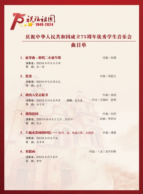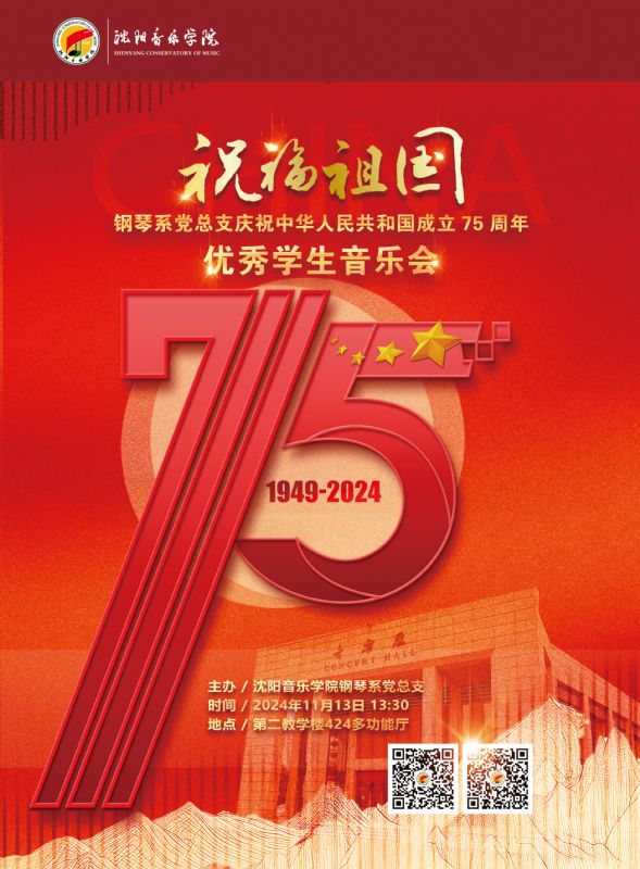 音乐会名称:祝福祖国——钢琴系党总支庆祝中华人民共和国成立75周年优秀学生音乐会