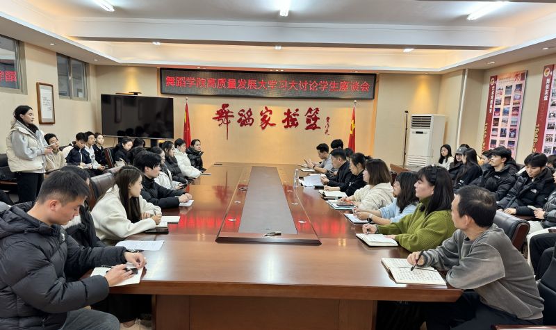 为贯彻落实学院“高质量发展大学习大讨论”工作动员部署会议精神,为进一步全面深化教育教学改革,加快推动各项工作高质量发展,11月18日,舞蹈学院组织召开“高质量发展大学习大讨论”学生座谈会。舞蹈学院党委副书记辛德万、全体辅导员及研究生、本科生各班班长参加会议。座谈会由辛德万主持。