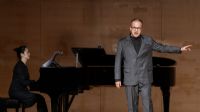 2024级研究生孙一盛演唱威尔第歌剧《化妆舞会》选段“Eri tu che macchiavi”,他的嗓音浑厚,描绘出雷纳多对友谊的失望和绝望,决心要让里卡多的鲜血来清洗他被玷污的灵魂。第二首《黑雾》是一首戏剧性较强的歌曲,他精彩演绎了复杂而细腻的情绪变化。