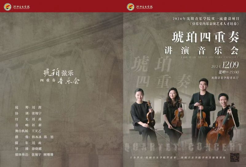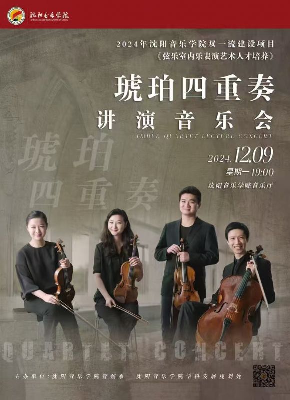 音乐会名称:2024年沈阳音乐学院双一流建设项目《弦乐室内乐表演艺术人才培养》—琥珀四重奏讲演音乐会