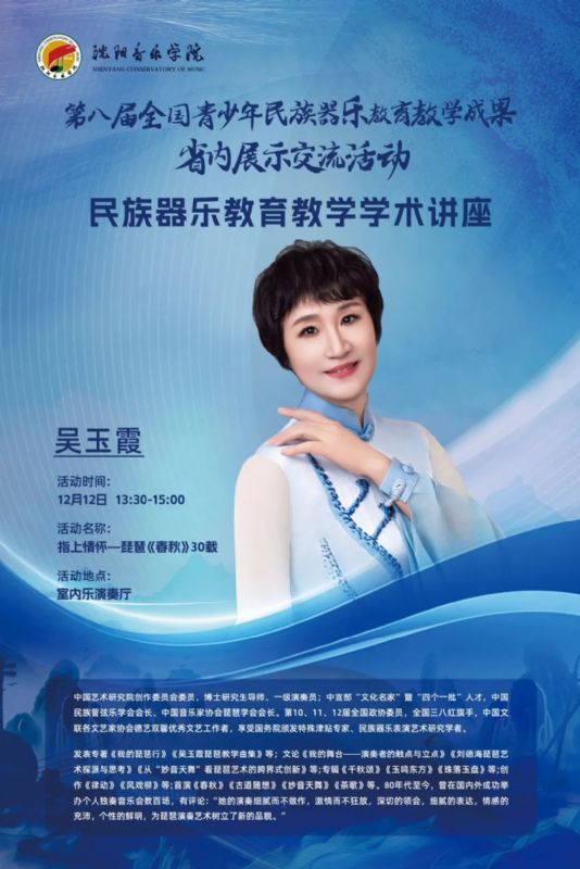 预告|著名扬琴演奏家、教育家,浙江音乐学院国乐系教授、硕士研究生导师,于海英教授学术讲座及扬琴专业交流会