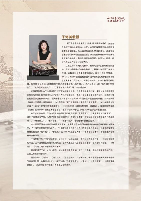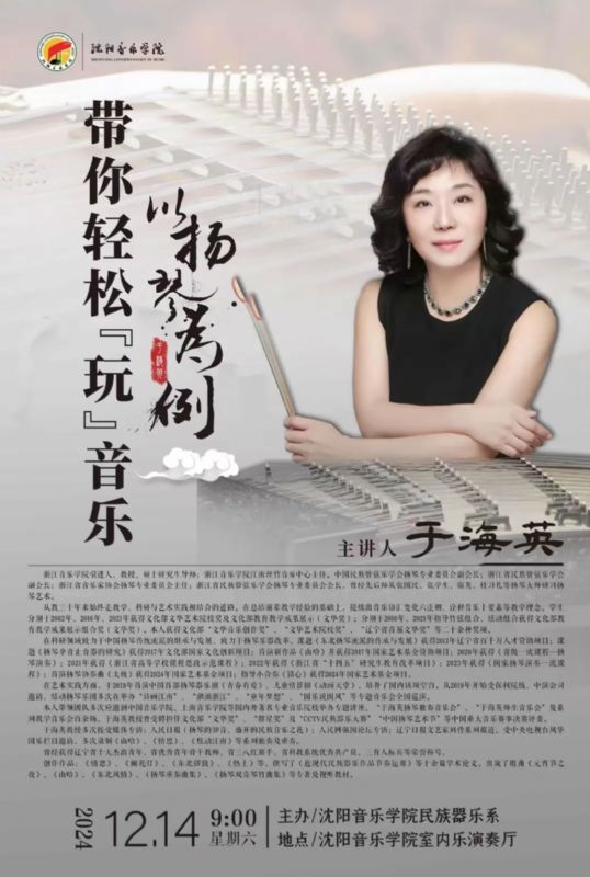 预告|著名扬琴演奏家、教育家,浙江音乐学院国乐系教授、硕士研究生导师,于海英教授学术讲座及扬琴专业交流会
