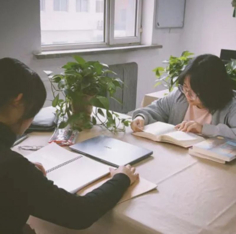 图书馆内,他们围坐一桌,