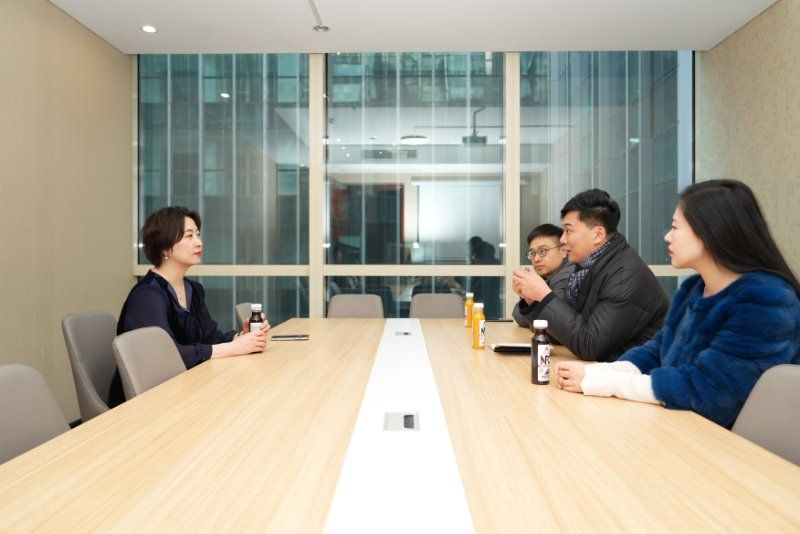 在金桥教育集团,董事长阎薇介绍了集团发展历程、业务范围以及在教育培训领域的人才需求,特别是在传媒与教育培训结合方面的巨大发展空间。她对学院培养的毕业生给予高度评价,并希望双方在人才培养、社会实践以及校企联合办学等方面探索更多合作模式。