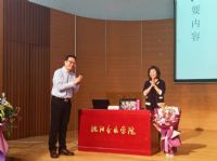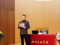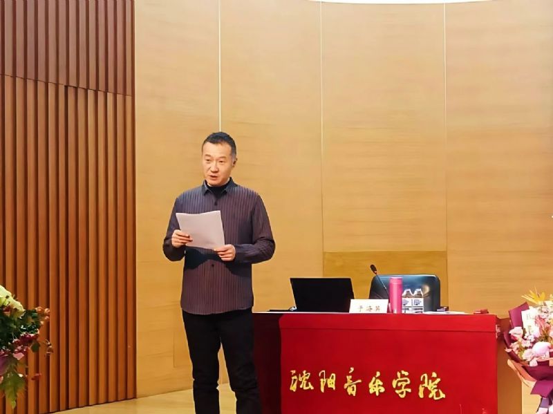 于海英教授的《带你轻松玩音乐》——以扬琴为例学术讲座由系主任张科威致辞。于海英教授采用理论阐述与现场示范相结合的方式,以扬琴演奏为具体案例,进行深入浅出的讲解。