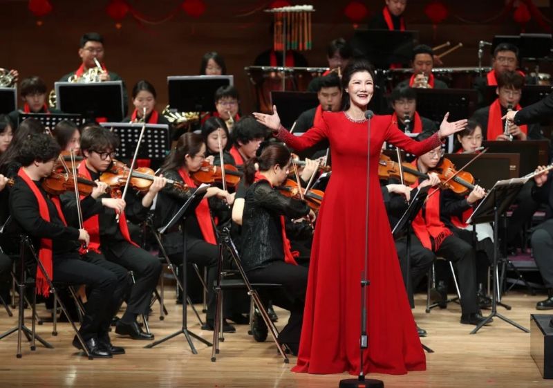 音乐会荟萃中西音律经典,曲目设置别具匠心、创意独到,既有幽默风趣、极具东北地域风格特色的民间小调《丢戒指》,融入山西民歌元素、深邃优美的歌曲《远情》,藏族民歌音乐元素鲜明,悠扬抒情、荡气回肠的歌曲《天路》;有展现中华民族悠久灿烂音乐文化的民乐合奏《金蛇狂舞》、古筝协奏曲《定风波》;又有脍炙人口、令人耳熟能详的经典管弦乐曲《节日序曲》《爱的致意》《威风堂堂进行曲》《柴可夫斯基第四交响曲》《肖斯塔科维奇第二圆舞曲》,以及寓意新的一年万物复苏的花腔女高音独唱《春之声圆舞曲》。还有近年来创作的民族管弦乐《春华秋实》,借音乐象征从辛勤耕耘到收获满满的历程,寓意新年的美好祝愿。音乐会上还演出了由我院创作的民族管弦乐《盛》,通过展示庆典仪式的庄重、欢庆与典雅,寓意兴旺、繁茂与美好;由我院创作并入选国家艺术基金2024年度资助项目的原创歌曲《初心告诉我》,深切表达了中国共产党人永葆奋斗精神、永怀赤子之心的使命担当。