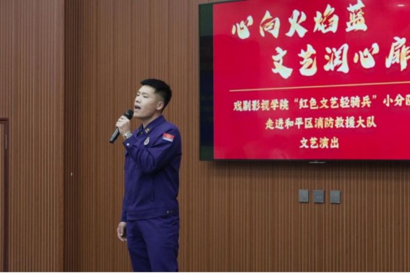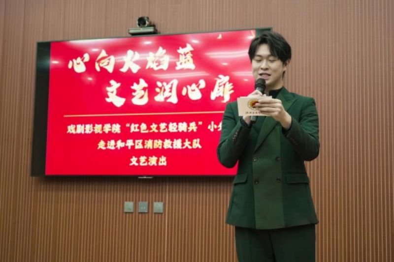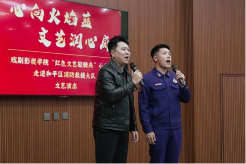 在第33个全国消防日来临之际,11月6日,戏剧影视学院“红色文艺轻骑兵”第91、93小分队走进沈阳市和平区消防救援大队,用精彩的文艺节目向英勇无畏、竭诚为民的消防救援官兵致以崇高的敬意和亲切的慰问。