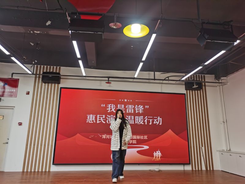 随后,音乐科技系红色文艺轻骑兵小分队闪亮登场,为社区居民带来了一场别开生面的“我是雷锋”惠民文艺演出,充分展示了音乐科技系师生的艺术才华和青春活力。演出过程中,社区居民们被师生们的表演深深吸引,现场不时爆发出热烈的掌声,气氛热烈而温馨。