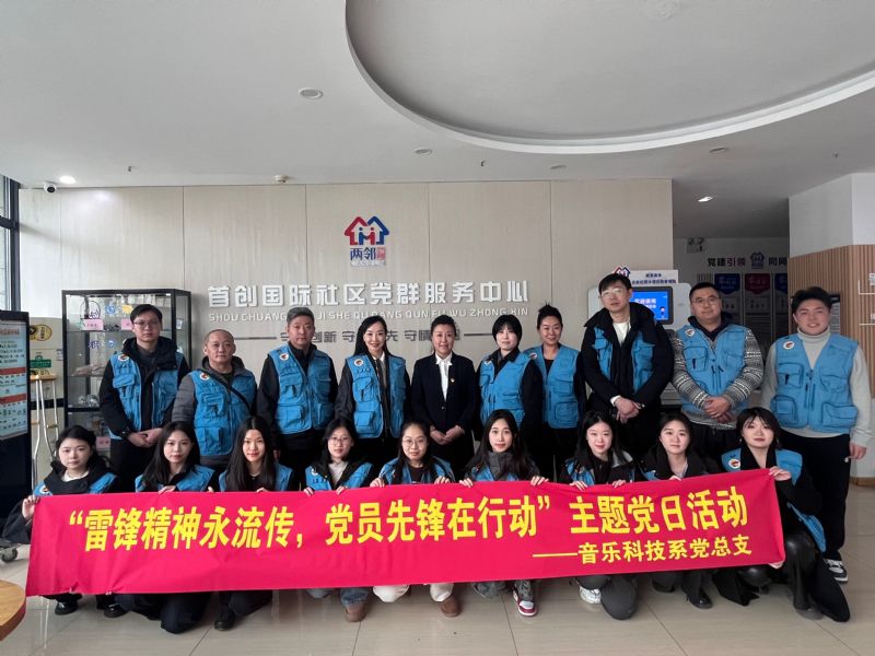 在全国第62个学雷锋纪念日到来之际,为深入学习和弘扬雷锋精神,充分发挥党员先锋模范作用,3月5日,音乐科技系党总支、分团委联合组织党员、团员前往浑南首创国际社区,开展了以“雷锋精神永流传,党员先锋在行动”为主题的特色党日活动。