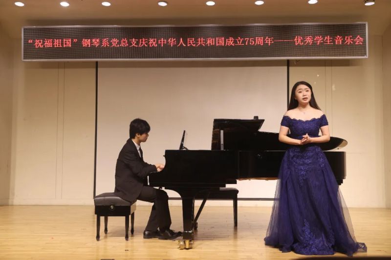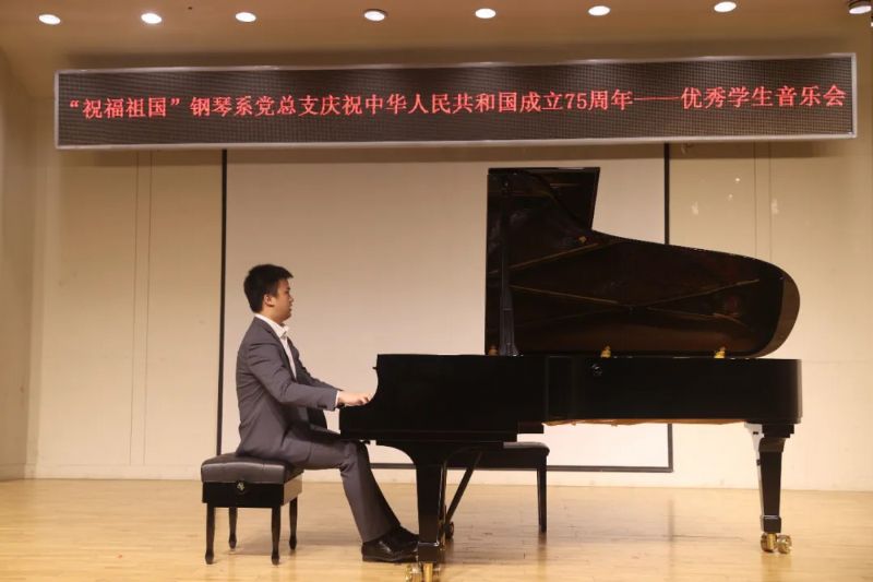 •                                为深入学习贯彻习近平总书记关于教育和青年工作的重要论述,庆祝中华人民共和国成立75周年,11月13日,钢琴系党总支举办了“祝福祖国——庆祝中华人民共和国成立75周年优秀学生音乐会”,为祖国送上最诚挚的祝福。2023级研究生刘奕含、于庆凯主持了本场音乐会。
