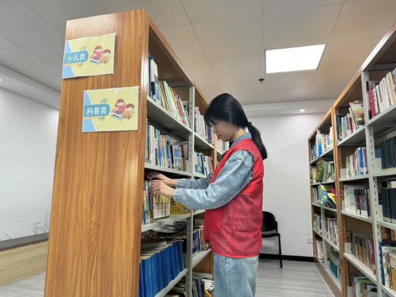 在辽宁省沈阳市皇姑区寿山社区,2024级本科生郭瑞昕在实践期间协助社区整理图书室近千余册书籍,以青春活力温暖"夕阳红"。