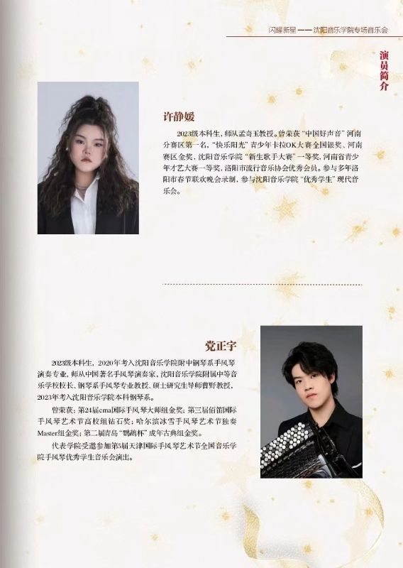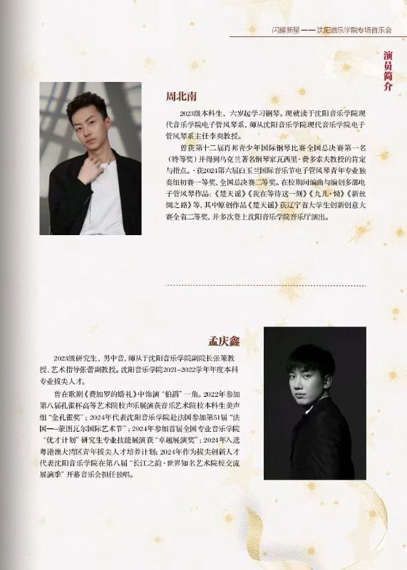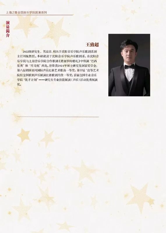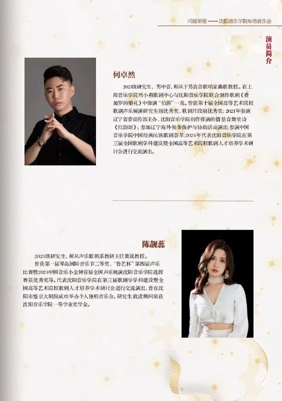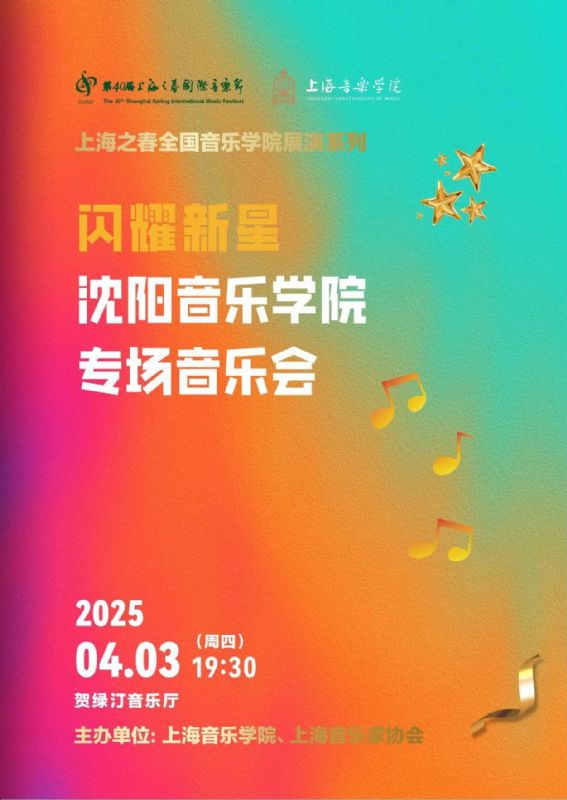 2025 年春季,音乐艺术的蓬勃朝气如潮水般席卷而来。在国内顶尖音乐院校的舞台上,一场场极具影响力的音乐盛事相继拉开帷幕。沈阳音乐学院2025春季演出季,以赴上海音乐学院,开展《上海之春音乐节系列活动之“闪耀新星”—沈阳音乐学院专场音乐会》作为开篇,正式激情启幕 。