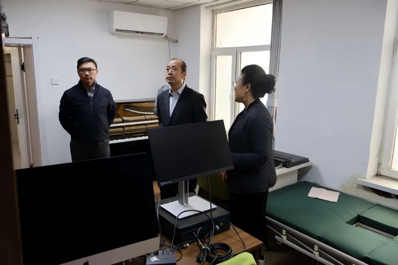 随后,肖世奇参观了沈阳音乐学院声学实验室、脑电实验室及键盘乐器修造和弦乐器制作工作室,详细了解音乐科技系学科建设成果与技术应用场景。