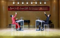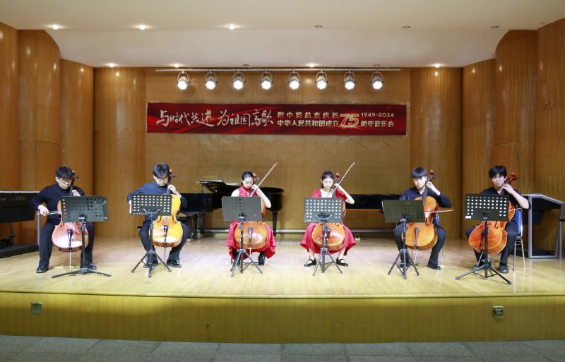 盛世华诞,荣耀中华。在中华人民共和国成立75周年之际,附属中等音乐学校党总支精心策划并举办“与时代共进 为祖国高歌”专场音乐会。党总支书记胡术艺、校长曹野、党总支副书记谢晓宇及各学科、科室负责人、教师、学生代表观看音乐会。音乐会由键盘学科党员教师刘明名主持。