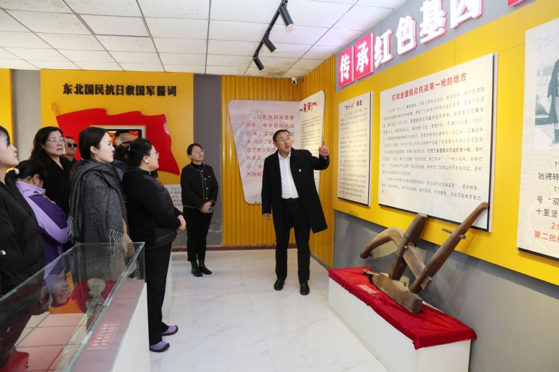 党员、师生们参观了新民市“不忘初心、牢记使命”党员教育基地暨“新民沙岭岗子抗战历史展馆”。展馆共分为“三厅两廊一室”:三厅,分别是民族呐喊厅、忠魂抗争厅、誓言无声厅;两廊,分别是习语长廊、民心走廊;一室是组织生活室。在王恕副校长的精彩讲解下,通过一件件实物和历史图片以及翔实的文字解说,重温了东北抗联战士的英雄事迹和中国共产党在抗日战争中的光辉历程。特别是当了解到国歌《义勇军进行曲》的歌词灵感正是来源于这片土地上的抗战故事时,师生们深受触动,内心涌起对这片土地以及为国抗争先辈们的无限敬意。