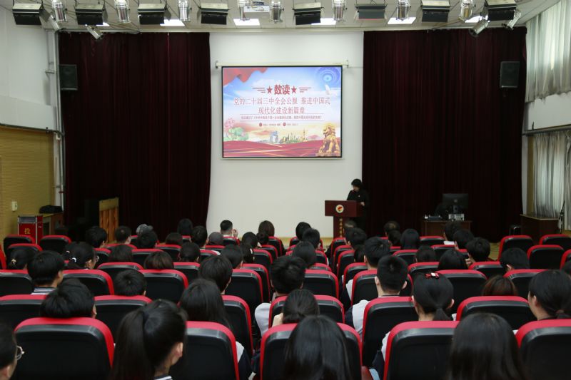 曹野用翔实的数据,深入解读了《党的二十届三中全会公报》的核心要点和精神内涵。通过具体的数据对比和实际政策的分析,让师生们更加清晰地了解到国家在经济、社会、文化等各个领域所取得的显著成就,以及未来的发展方向和目标。结合附中实际,对学校未来高质量发展进行展望。希望师生们大力弘扬鲁艺精神、赓续红色血脉,在学院党委的坚强领导下,凝心聚力,突出办学特色,为加快推进辽宁全面振兴新突破贡献更多音乐力量。