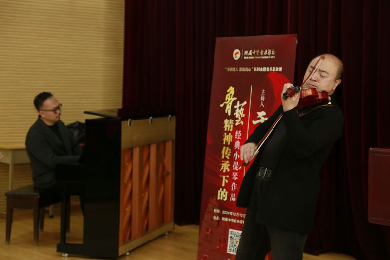 12月12日,附属中等音乐学校管弦学科主任于泳副教授作“鲁艺精神传承下的经典小提琴作品”专题讲座。党总支书记胡术艺、党总支副书记谢晓宇、办公室主任杨松、教学实践科科长卢佳璇、学生科科长万苏、管弦学科副主任胡天纵、附中党员、管弦学科教师及部分学生代表聆听讲座。