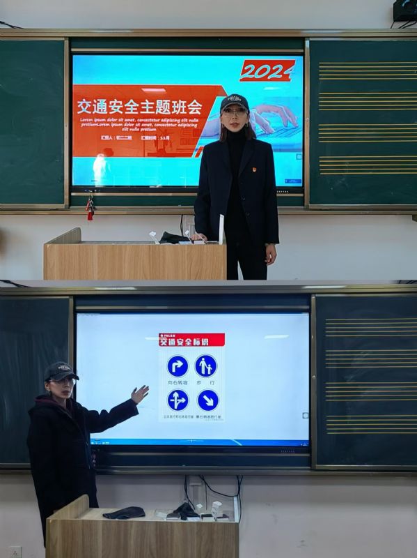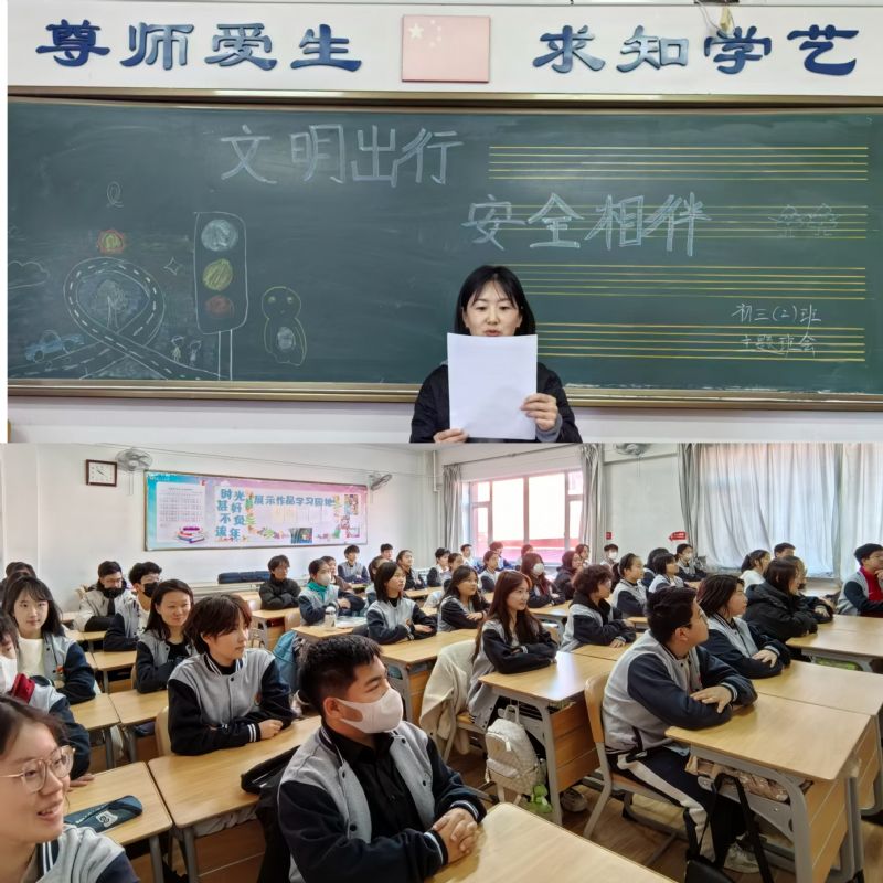 此次班会活动,各班班主任做了精心准备。初一二班班主任项培华通过播放一系列真实而震撼的交通事故视频,深刻揭示违规骑行、未成年人驾驶车辆等行为的潜在危险及其严重后果;高一三班班主任张效铭以角色扮演的方式,模拟各种交通场景,让同学们亲身体验在不同情况下如何正确做出交通行为选择; 初二二班班主任白肖肖深入浅出地讲解交通安全知识,指导学生们识别各种交通标志,深入分析交通事故发生的原因,给予同学们实用的交通安全建议和自我保护措施;高二五班班主任赵丽丽设置了知识问答竞赛环节,让同学们在竞答中进一步巩固所学的交通安全知识;初三一班班主任韩辉组织学生进行交流研讨,分享自己曾经目睹或经历的交通惊险瞬间,让同学们认识到遵守交通规则是对自己和他人生命的尊重与珍视。